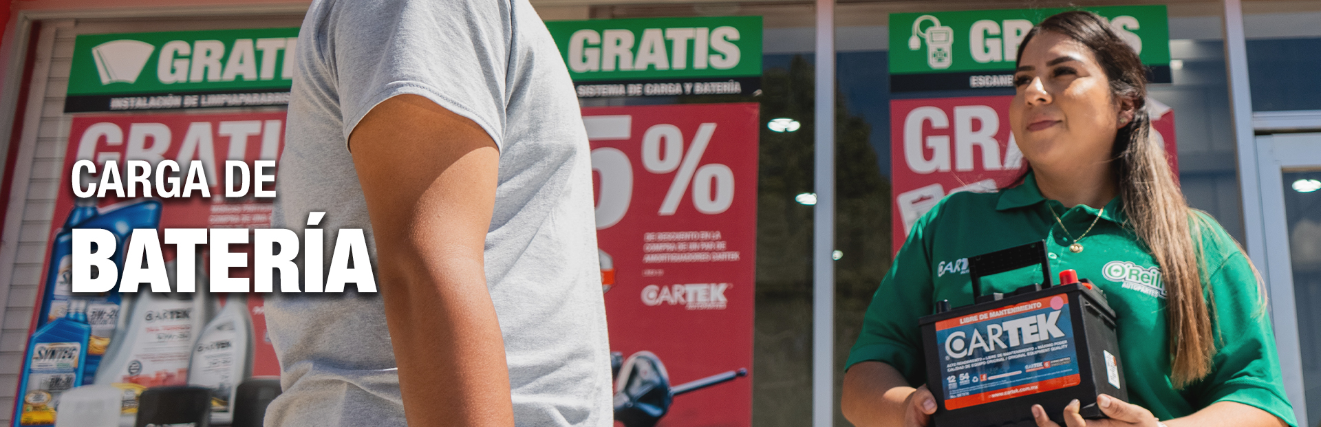 Lleva tu batería para una prueba y recarga gratuita (aplica para la mayoría de las baterías de auto, motocicleta, marinas, etc.). Los expertos revisan si necesita reemplazo o recarga, y pueden instalar una nueva batería sin costo en muchos vehículos.